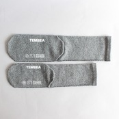 足先からふくらはぎの方に向かって編まれているため、つま先部分に接ぎがないシームレスな靴下。