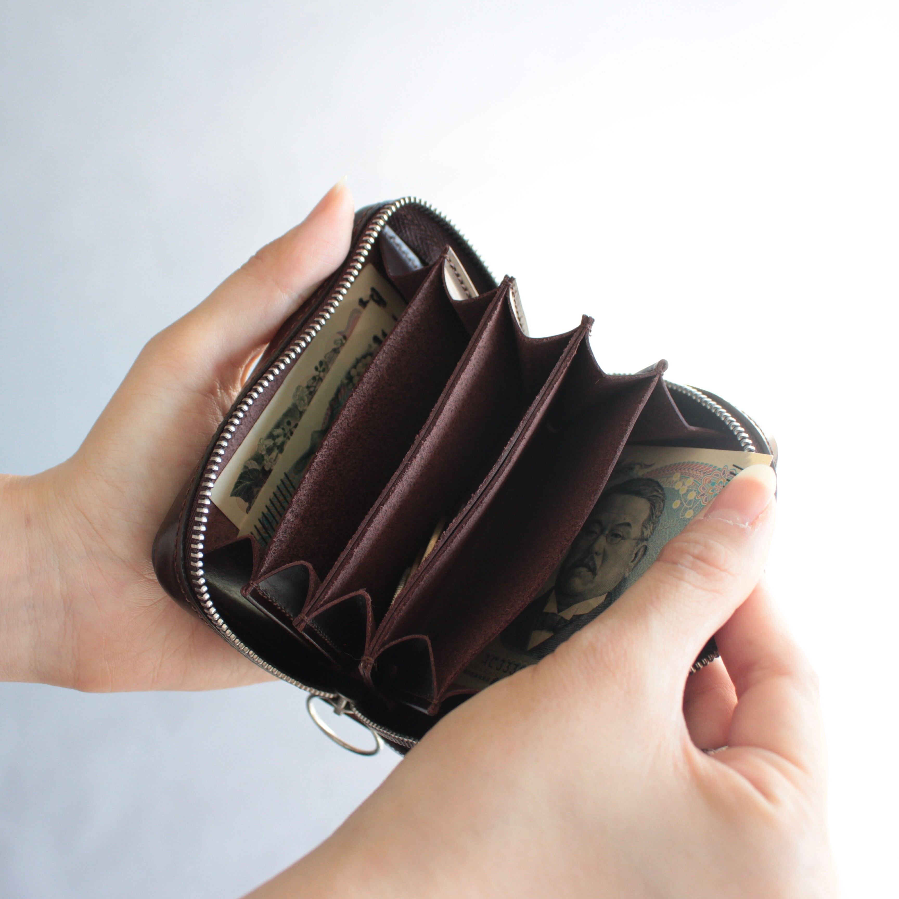 内側には5つの仕切りがあり硬貨やカードを仕分けられ、紙幣はその下を折らずに通すことができます。