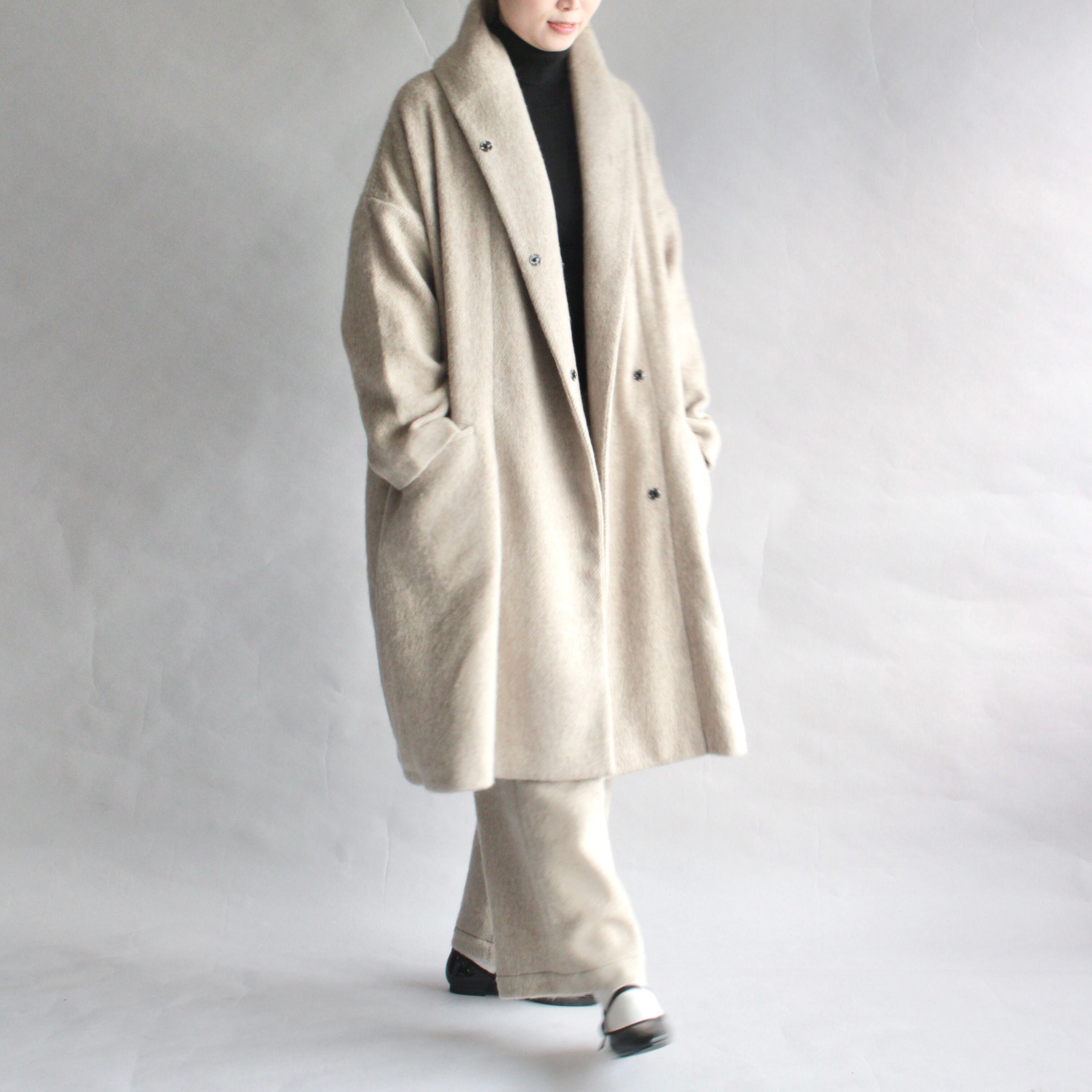 リサイクルシャギーウールショールカラーコート/ HONNETE