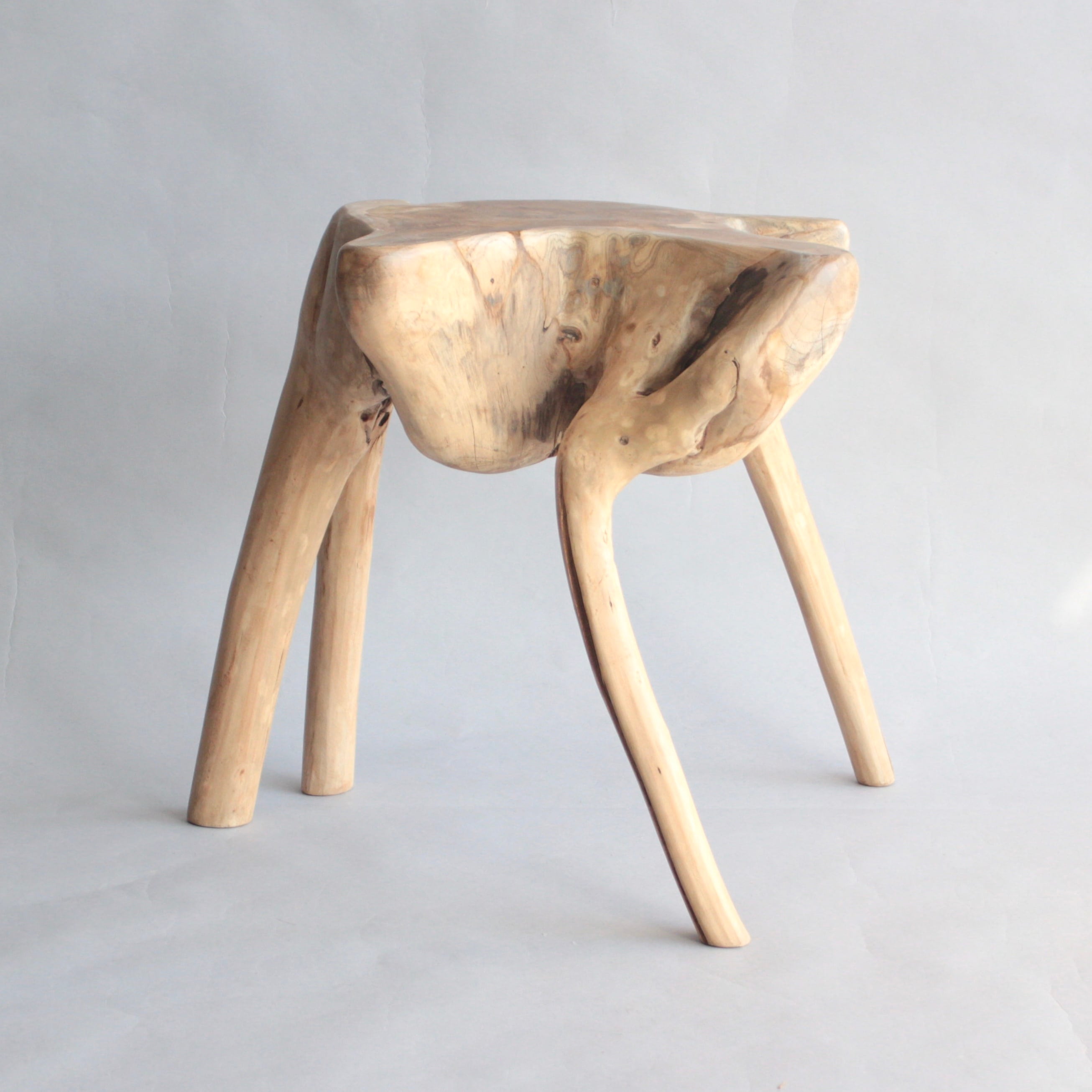 インドネシア語でイカを意味する「チュミ」スツールは、チーク材を使用して、自然の幹や根のかたちをありのままに活かしています。