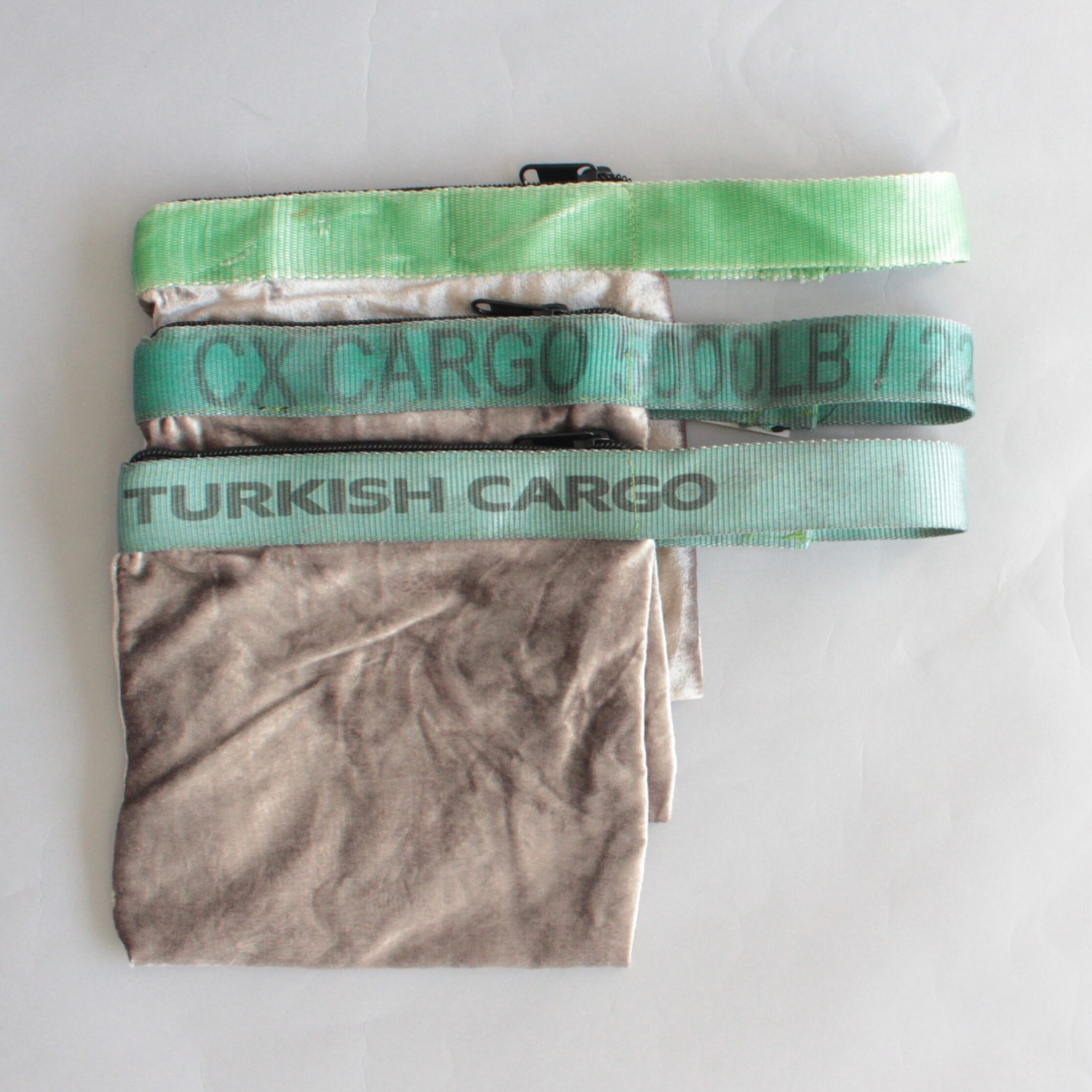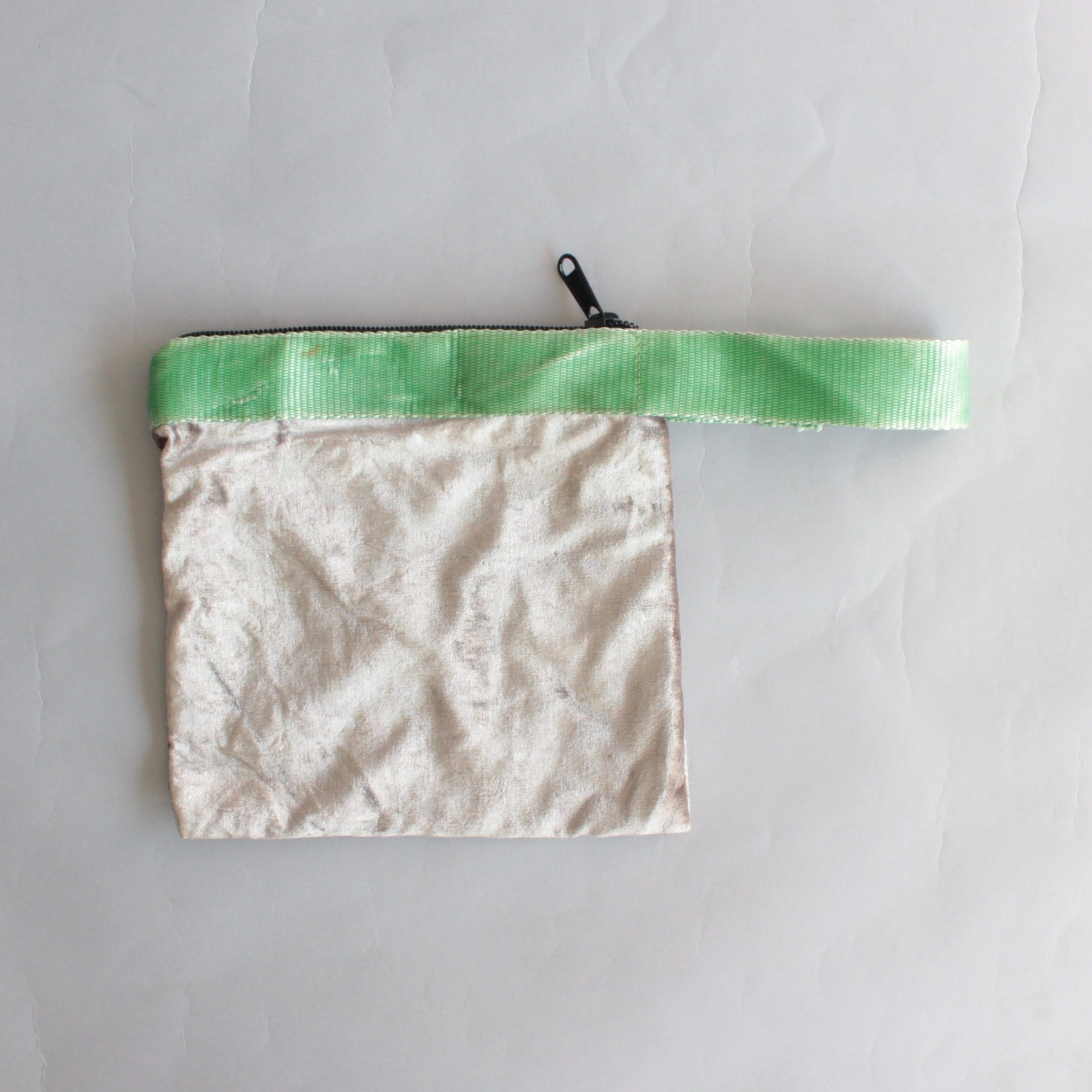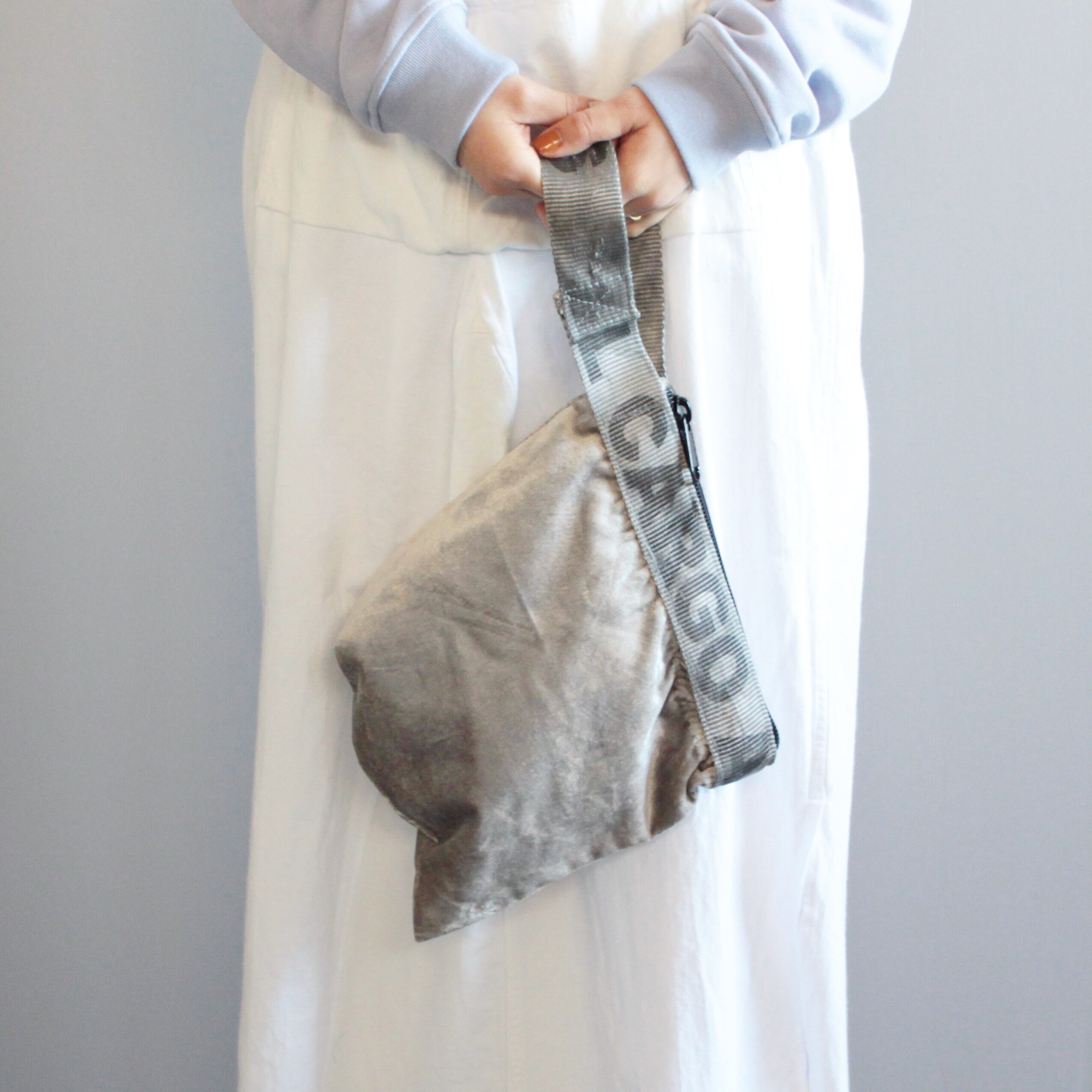 上品なベロア生地とビンテージのベルトを使用したバッグ。