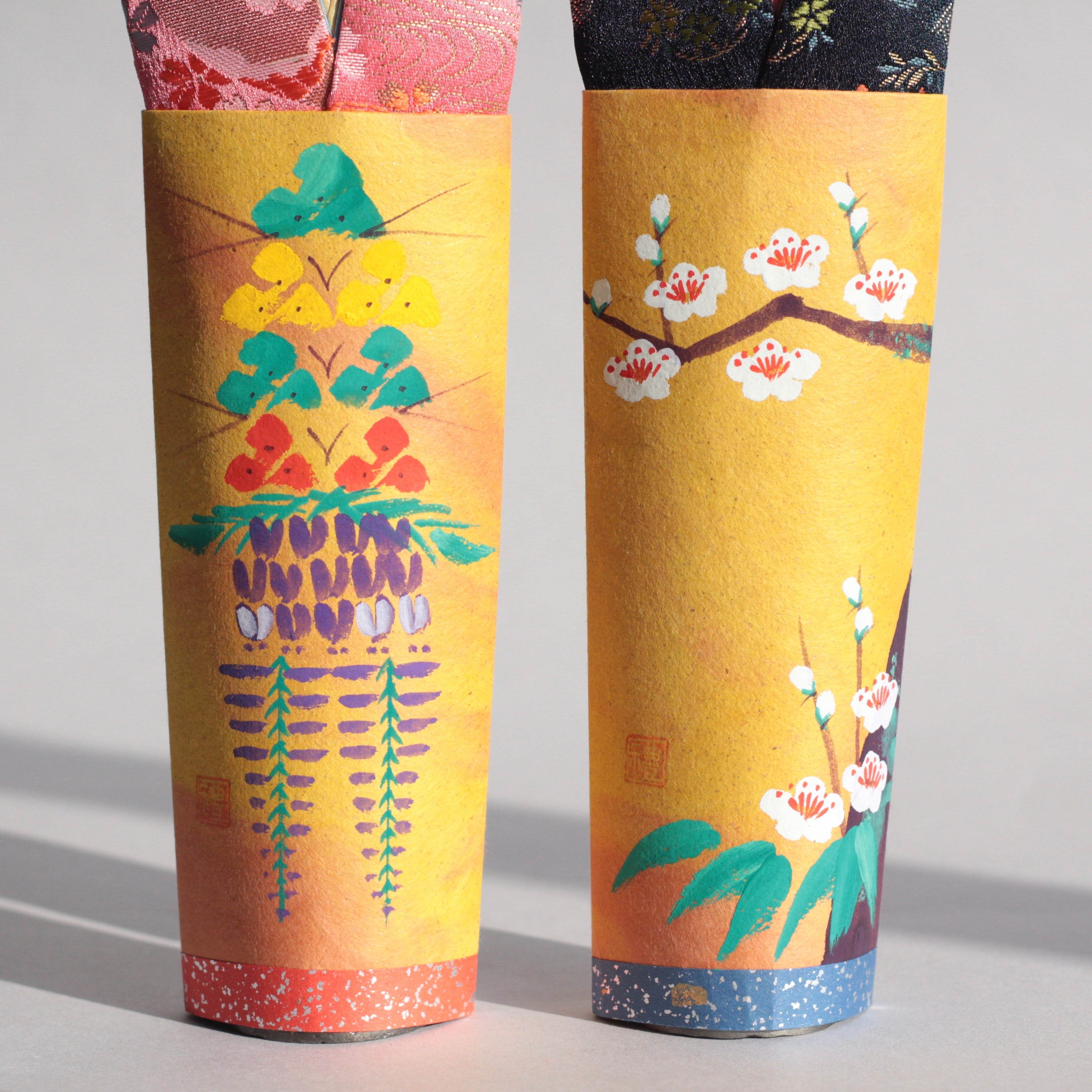 和紙に彩色を施した衣装と、鹿児島らしい華やぎをまといながらも、顔を描かないことで生まれる透明感が静かな気品を宿します。