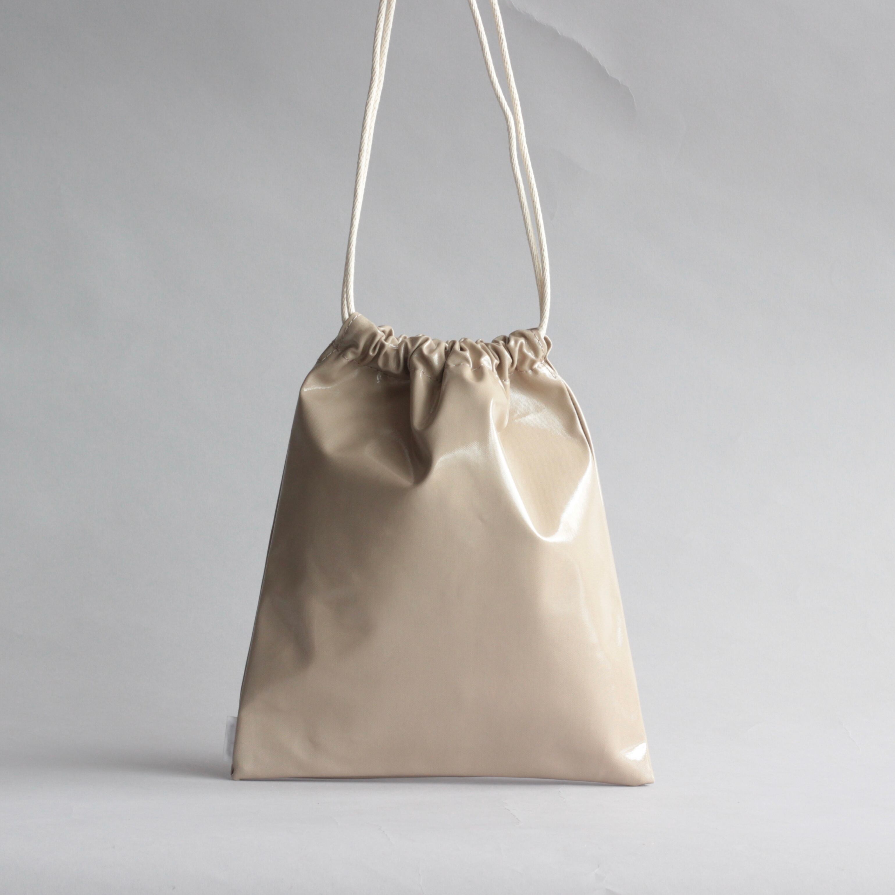 紐の通し方が輪になっているため、肩から掛ける時も快適に使える巾着バッグ。