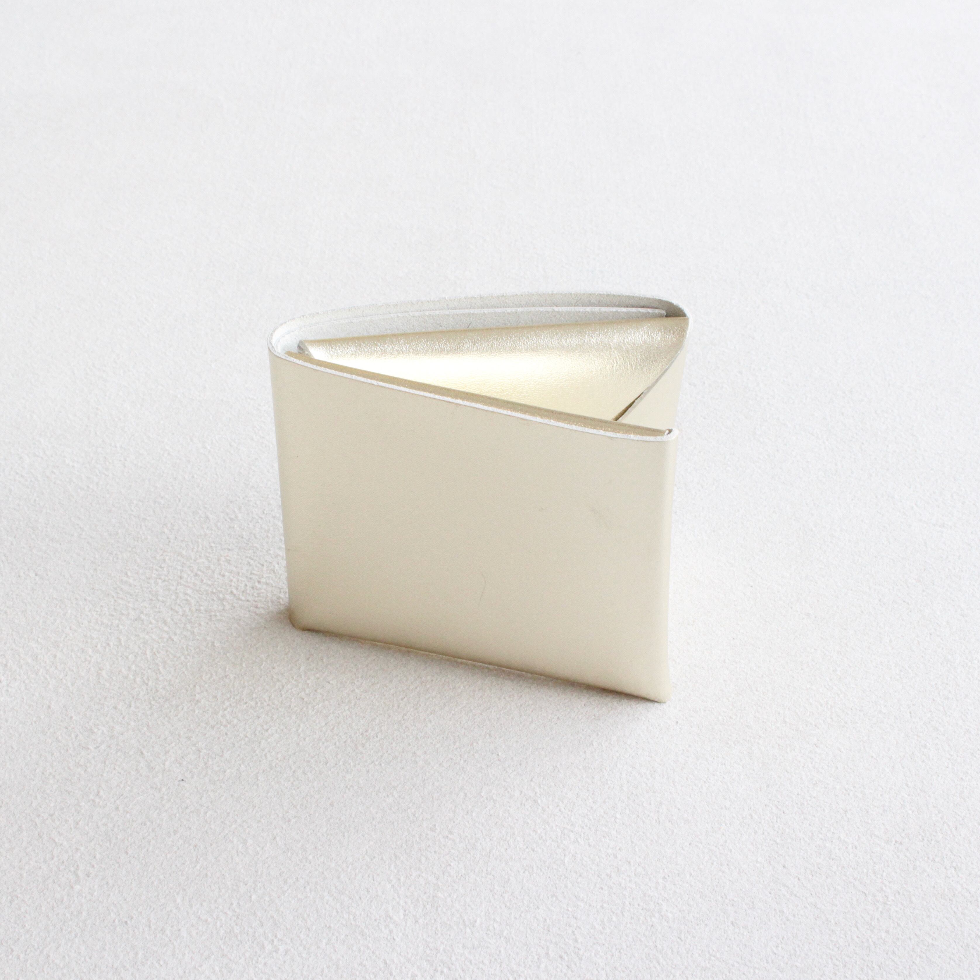 一枚の革を縫製せずに折り込んで組み立てたシンプルな2つ折り財布。