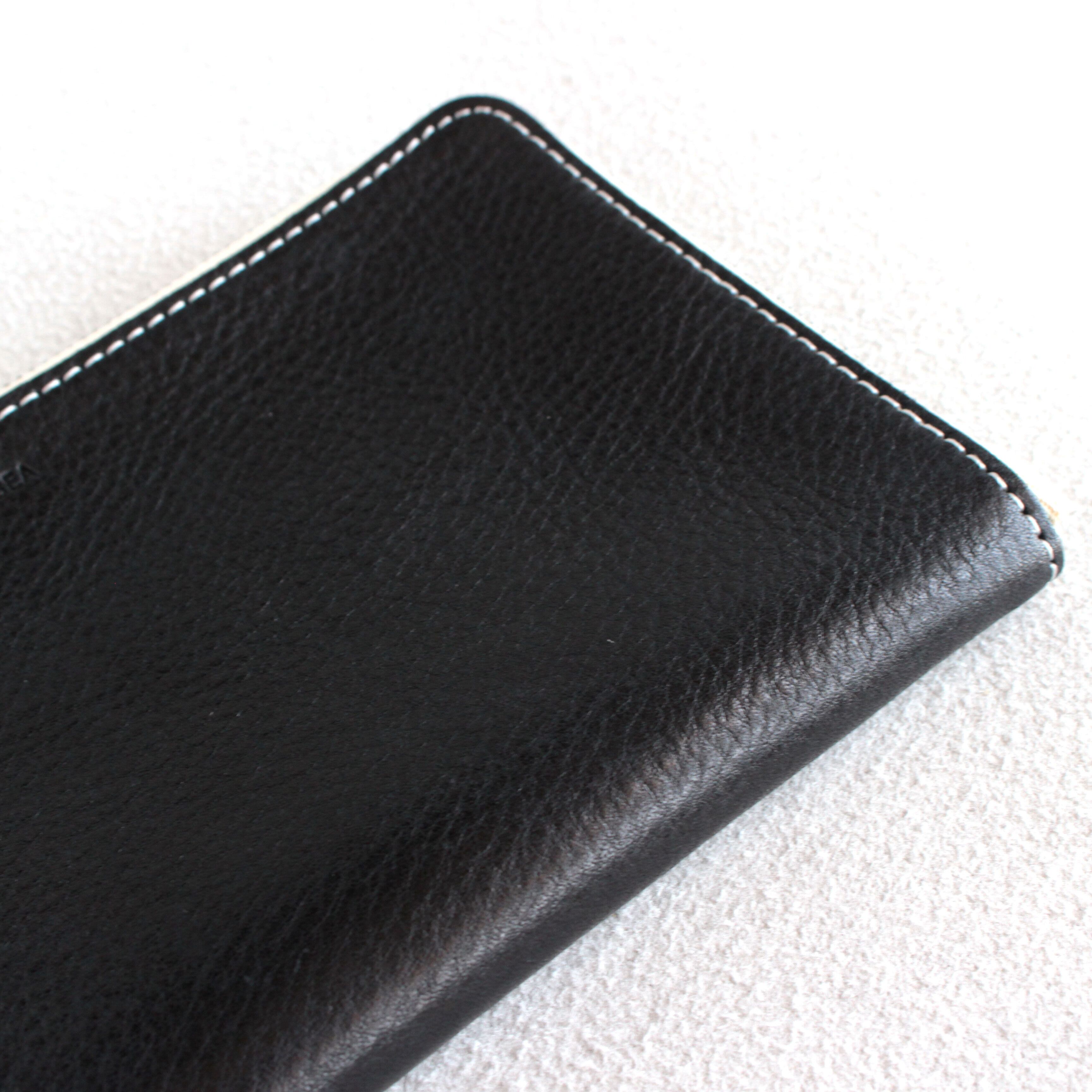 ファスナーが大きくL字に開くため、お札の出し入れがしやすくなっています。 内側には仕切りが付いていて、ファスナーを開ける一度の動作だけで、 硬貨、カードなどどれもスムーズに取り出せるストレスフリーな作りが魅力です。タンニン鞣しをしたヌメ革を使用。