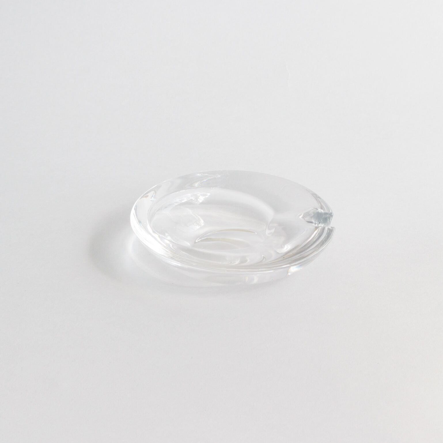透き通るガラスとさまざまな方向に反射する光が魅力の灰皿。