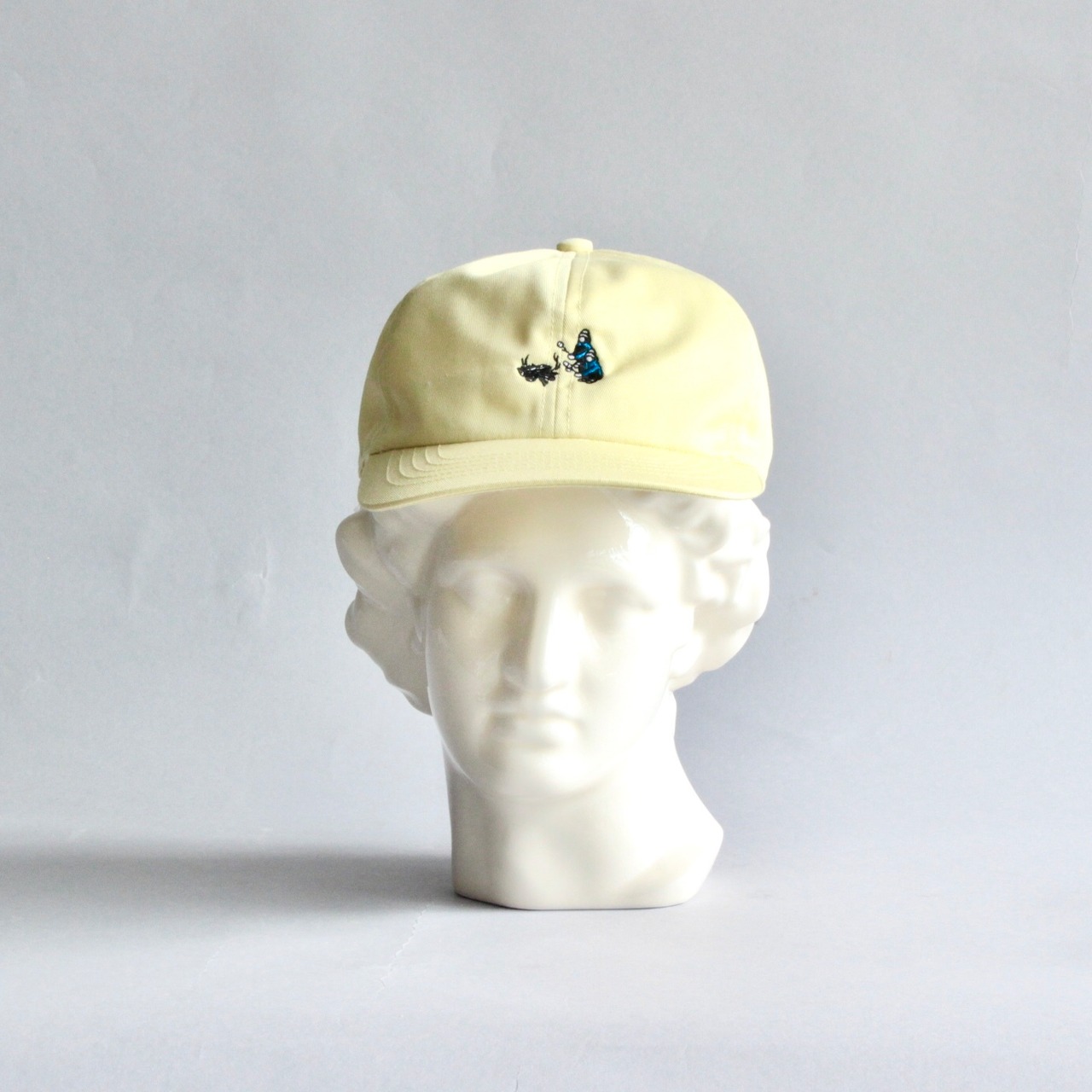 オールシーズン被りやすいツイル生地です。シーズンごとに変わる刺繍はキャンプ柄。焚き火でマシュマロを焼く姿が描かれています。