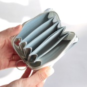 手の中にすっぽりと収まるサイズ感がちょうどいい、コンパクトな財布。 ファスナーを開ける一度の動作だけで、お札、硬貨、カードなど どれもスムーズに取り出せるストレスフリーな作りに。 内側は5つに仕切られているので、お札や硬貨、カードをきちんと仕分けることができます。 タンニン鞣しをしたヌメ革を使用。